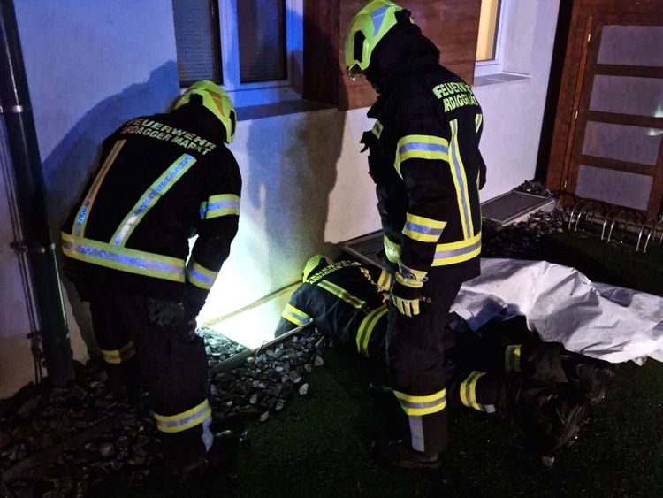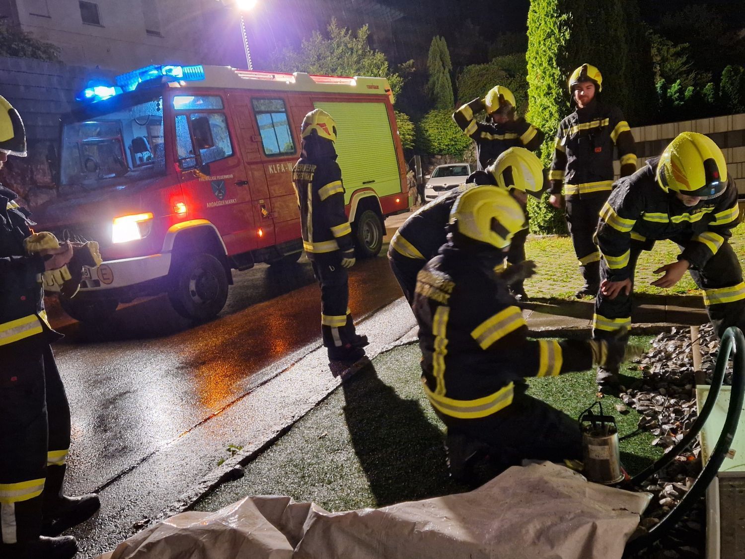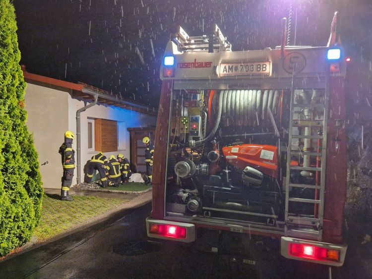 Nach schweren Niederschlägen ruft die Sirene kurz vor Mitternacht die FF Ardagger Markt zum Einsatz in die Sonnensiedlung. In den Keller eines Hauses ist Wasser eingedrungen.